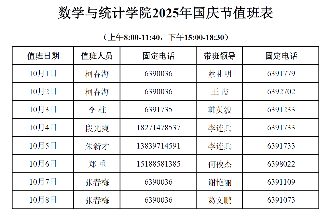 betway唯一官网2025年国庆节值班表