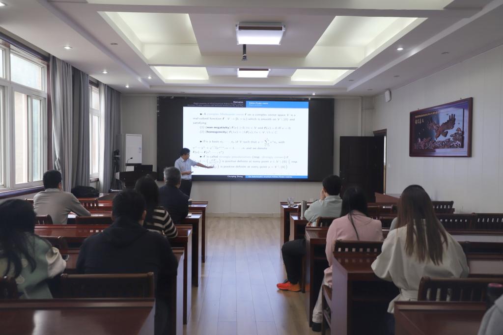 报告中钟教授首先介绍了多复变几何函数论中的全纯不变度量,它们都是自然复芬斯勒度量,接着介绍了单位超球单位多圆柱四类典型域上全纯不变芬斯勒度量的刻画,同时给出了这些齐性芬斯勒流形上的施瓦茨引理,相关结果表明陆常数既是解析不变量也是几何不变量